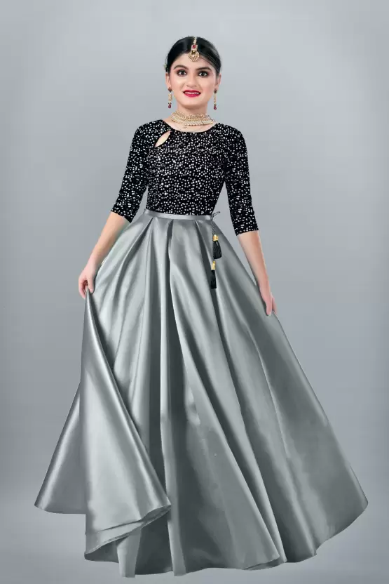 Girls Lehenga Choli Party Wear Embellished Lehenga Choli (Grey, Pack of 1)