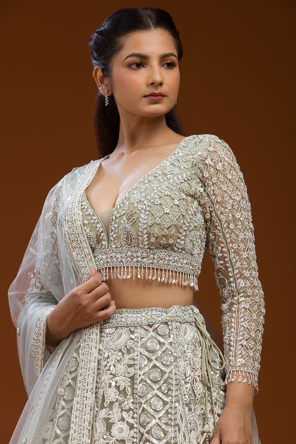 Lehenga Work : | Sequins, Bead, Pearl & Cutdana |