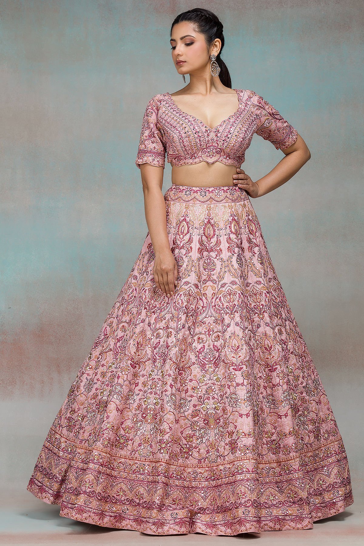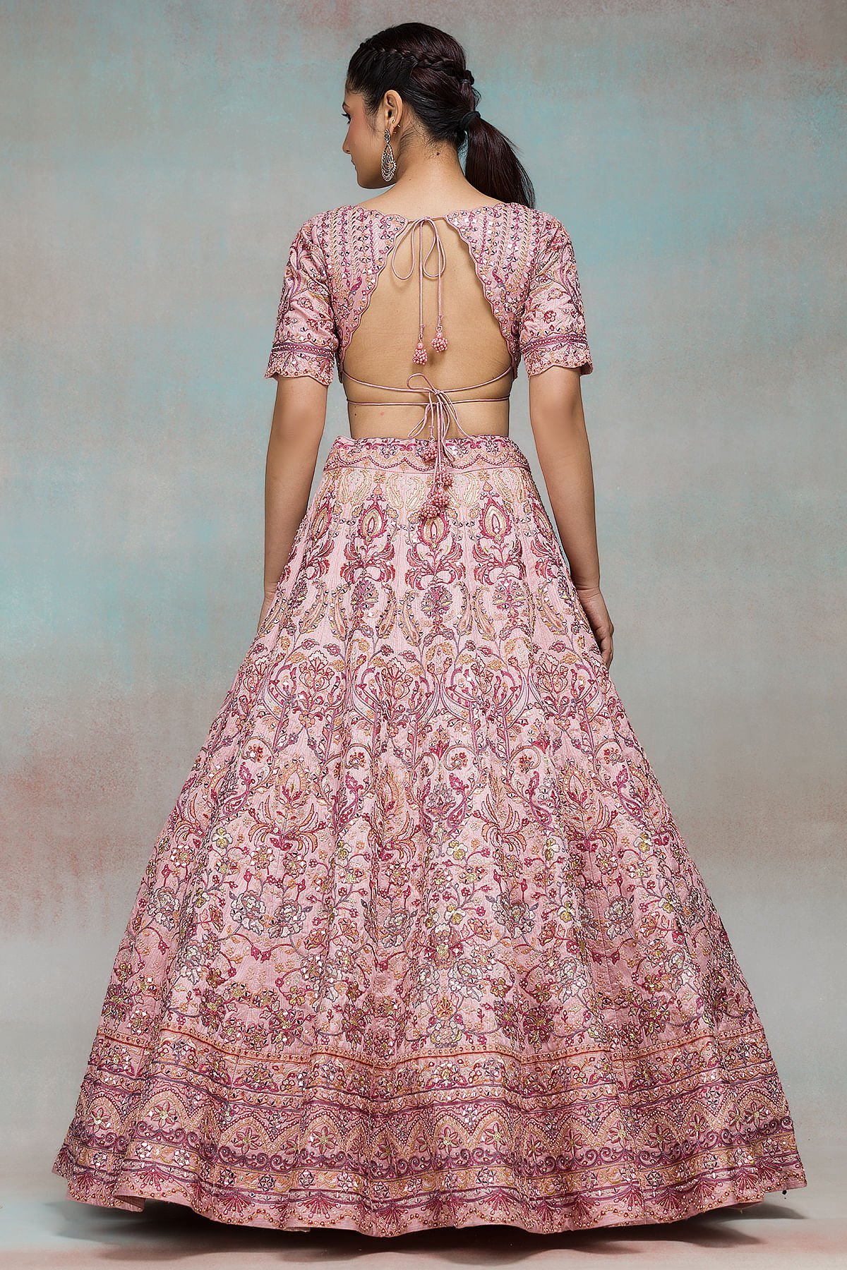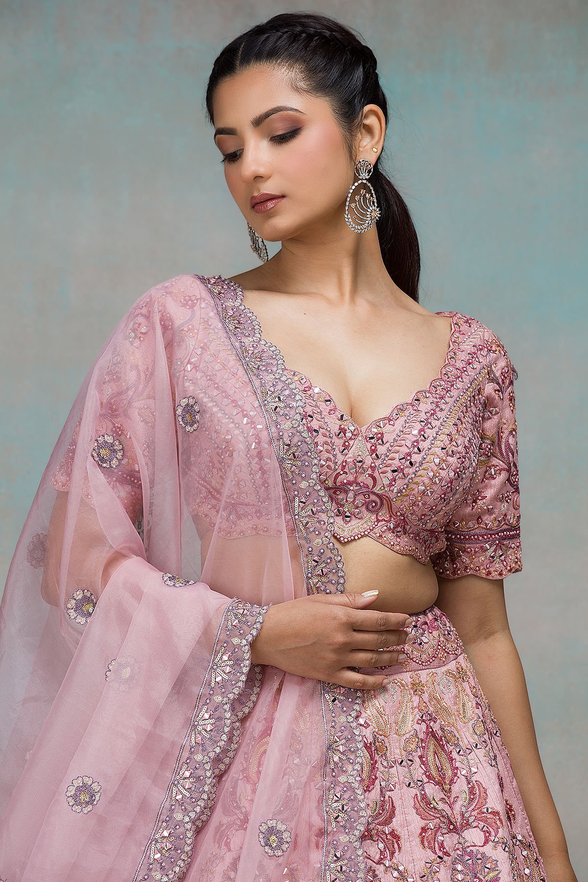 Peach Mirror Embroidered Raw Silk Bridesmaid Lehenga