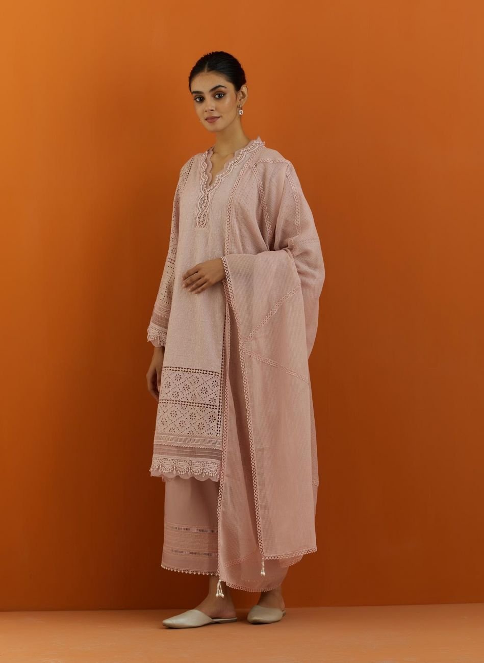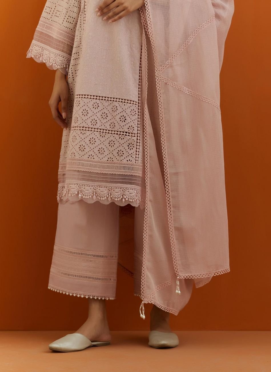 • Cutwork Straight Kurta set, bell sleeves and a plunging v-neckline