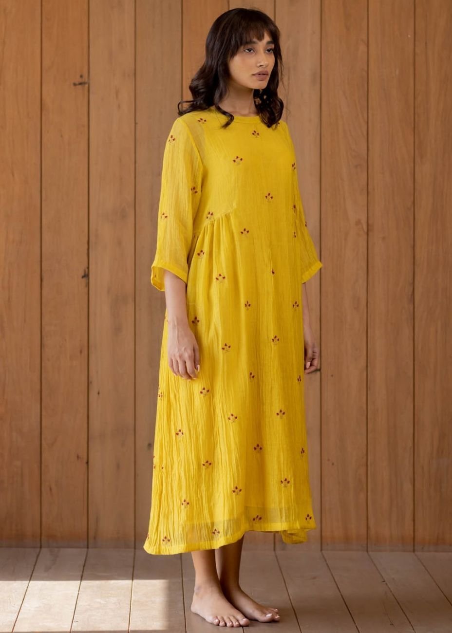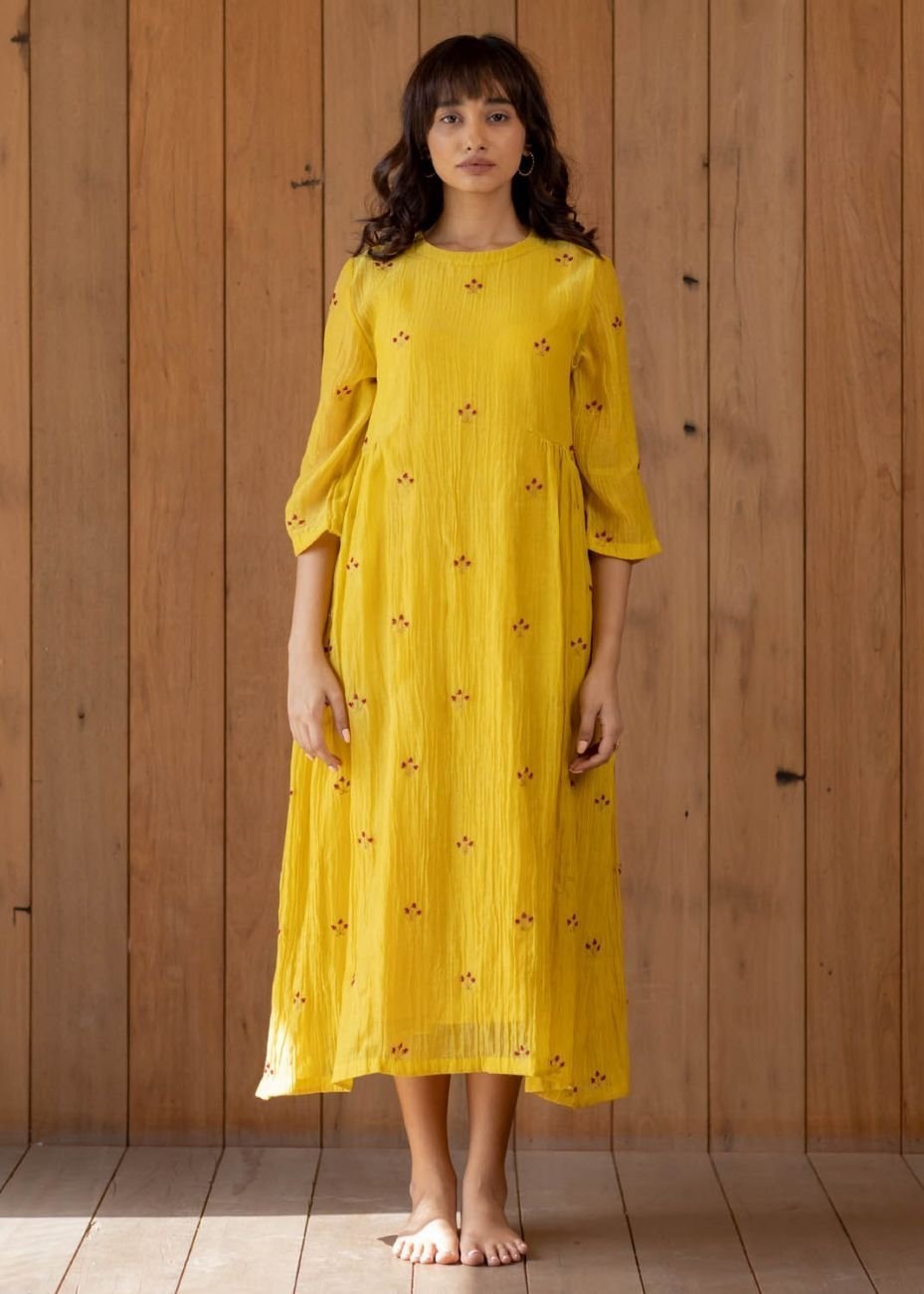 HomeWomen’s Designer ClothesDressesSunny Yellow Ekra Dress Up to - 16% Sunny Yellow Ekra Dress₹9,079.00 – ₹9,299.00 Sunny yellow ekra dress Fabric-chanderi cotton Color-sunny yellow Hand embroidered beadwork Comes with a slip No. of components – 2 sizes Choose an optionLMSXSClear Sunny Yellow Ekra Dress quantity Buy now Add to WishlistRemove from Wishlist Add to Wishlist Related products Add to WishlistRemove from Wishlist Add to Wishlist Light Mint Eden Front Slit Dress ₹14,500.00 Buy now This product has multiple variants. The options may be chosen on the product page Add to WishlistRemove from Wishlist Add to Wishlist Beige Tropical Print Dress ₹8,099.00 – ₹10,999.00 Buy now This product has multiple variants. The options may be chosen on the product page Add to WishlistRemove from Wishlist Add to Wishlist Green and Yellow Adila Dress ₹16,499.00 Buy now This product has multiple variants. The options may be chosen on the product page