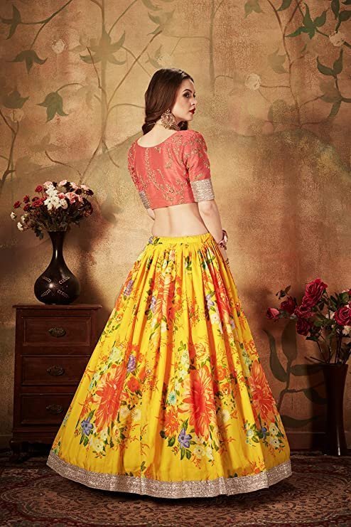 Women’s Floral Organza Semi Stitched Lehenga Choli with Dupatta
